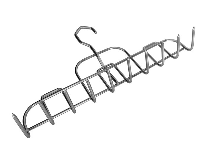 Noch nie war es so einfach, Schweinebäuche sicher aufzuhängen. Die mehreren Spitzen sorgen für festen Halt und ein gleichmässiges Räucherergebnis. Besonders bei breiten Speckseiten spielt dieser Räucherhaken seine Stärken voll aus.