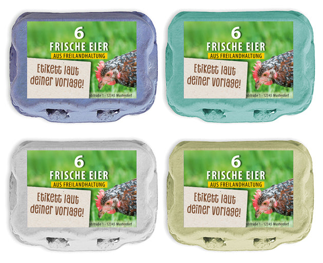 - Étiquettes individuelles pour boîtes de 6 œufs selon votre modèle