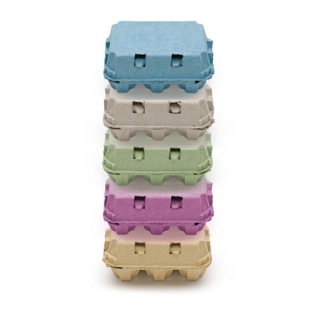 Die attraktive Eierschachtel in fünf Farben: Grün, blau, gelb, pink und braun. Zudem auch noch in dem beliebten Farbmix (70 Stück von jeder Farbe)